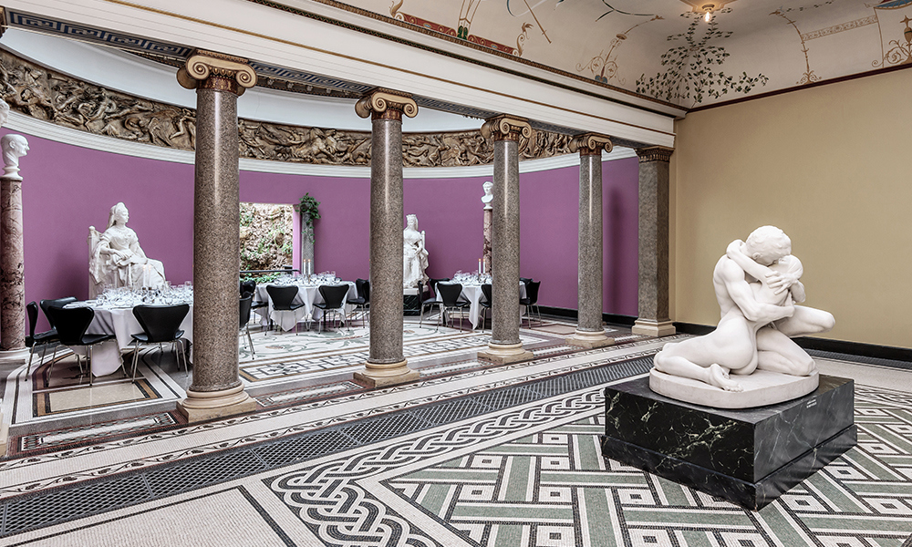 Skal arrangementet have format, er brygger Carl Jacobsens kunstsamling i forlængelse af sit hjem stedet at mødes. På Valby Bakke opbyggede han en af verdens største private samlinger af malerier og skulpturer. Hovedparten af samlingen skænkede han til København i form af Ny Carlsberg Glyptotek. Den resterende del kan stadig nydes som en del af jeres arrangement.